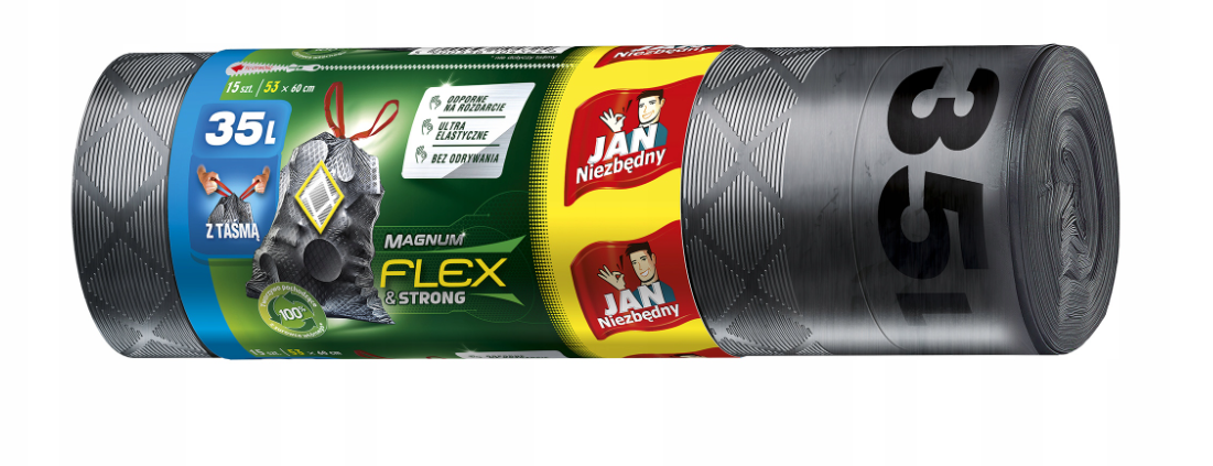 Worki na śmieci Jan Niezbędny 35L Flex&Strong z taśmą 15 szt.