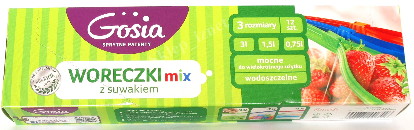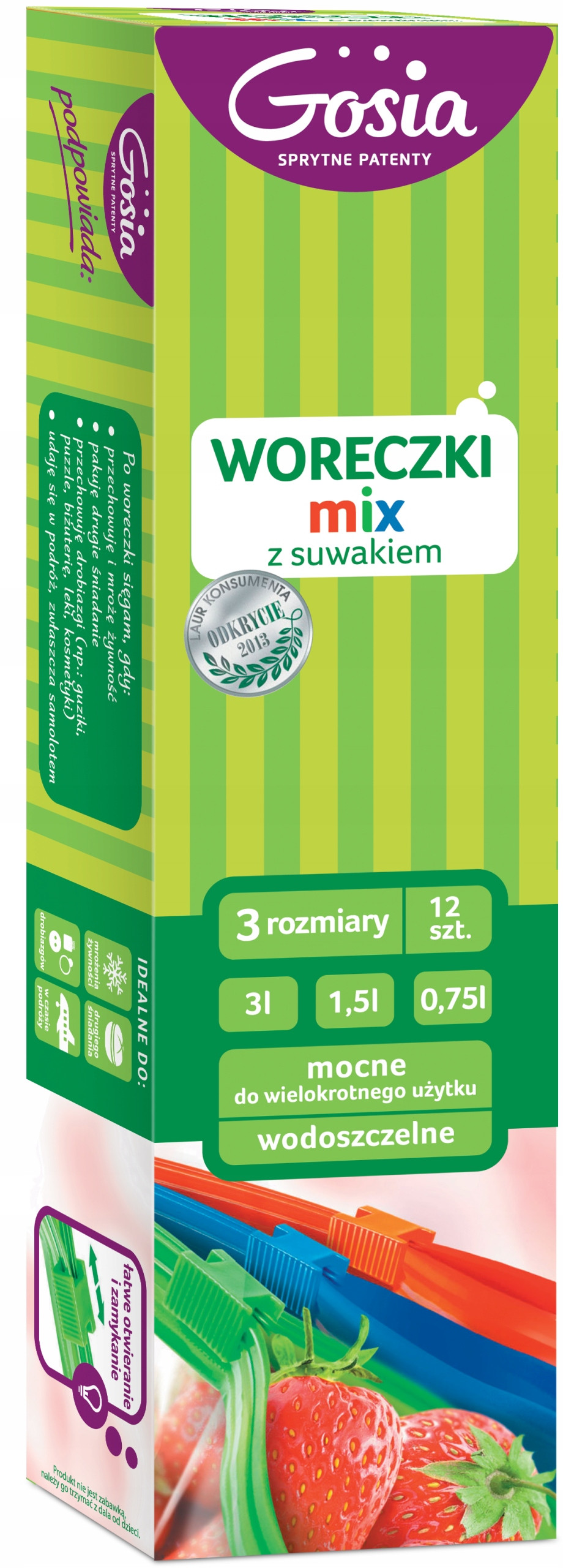 Gosia Woreczki z Suwakiem Mix 0,75L, 1,5L, 3L (12 szt)– Mocne, Wodoszczelne