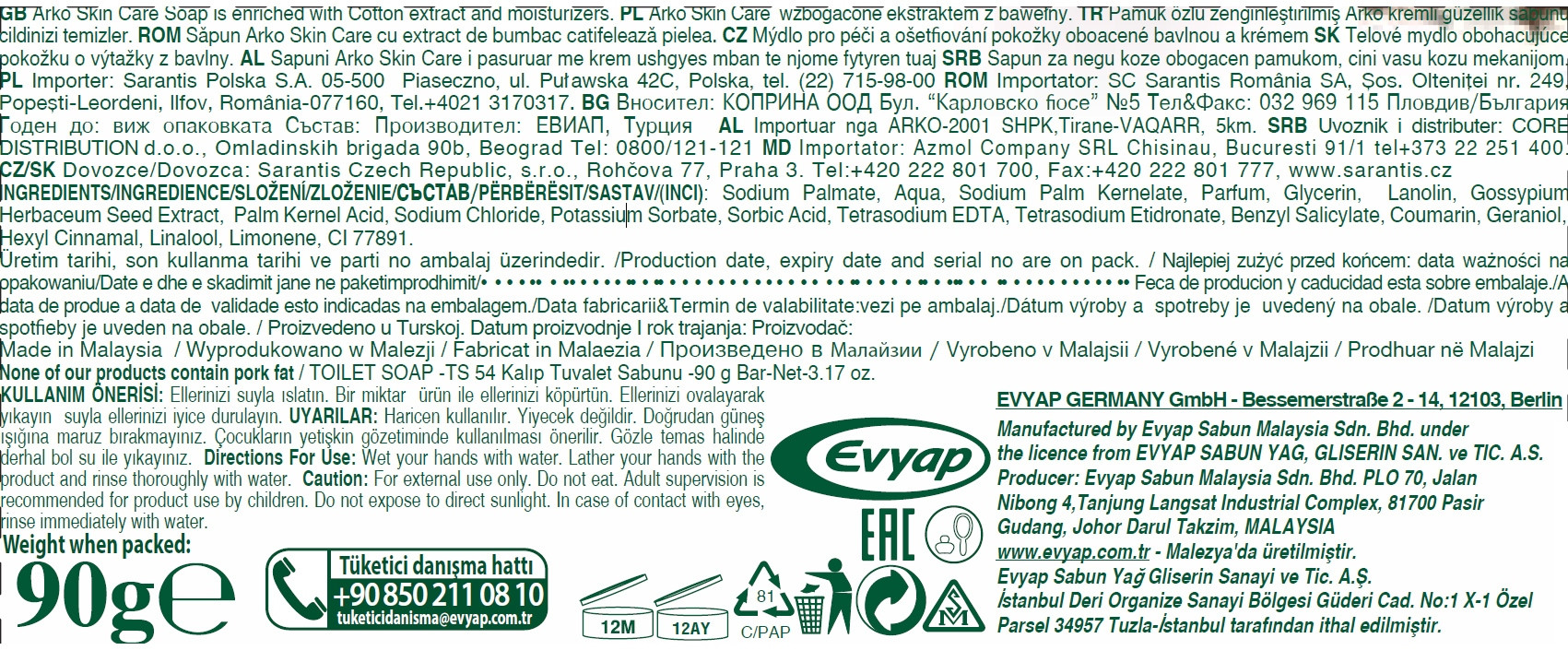 | Nazwa handlowa | Mydło w kostce Skin Care Creamy Cotton & Moisturizers |