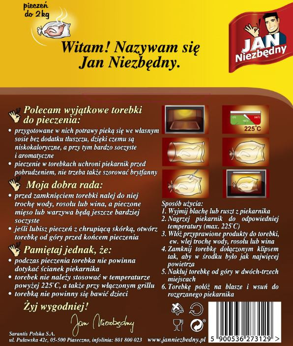 Jan Niezbędny Torebki Do Pieczenia 5 szt. 25×38 cm Do 2kg Mięsa i Warzywa