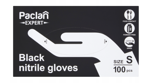 Rekawiczki NITRYLOWE CZARNE Paclan Expert S 100 szt