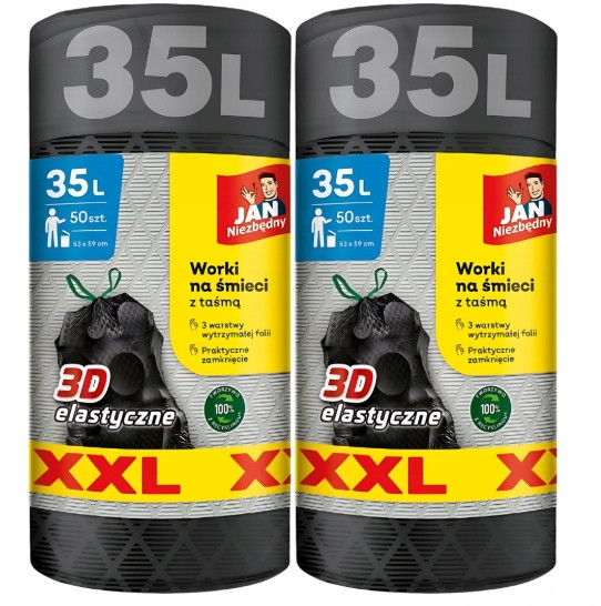 Zestaw 2X Worki Na Śmieci Uniwesalne Jan Niezbędny 35L z taśmą 50szt– Mocne, Szerokie