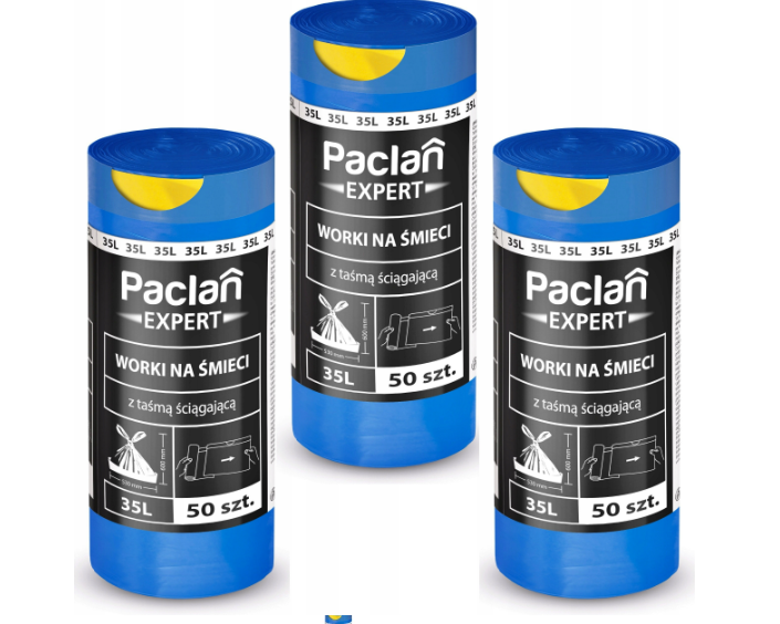Zestaw 3X Worki Na Śmieci Uniwersalne Paclan Expert z Taśmą 35L 50 szt