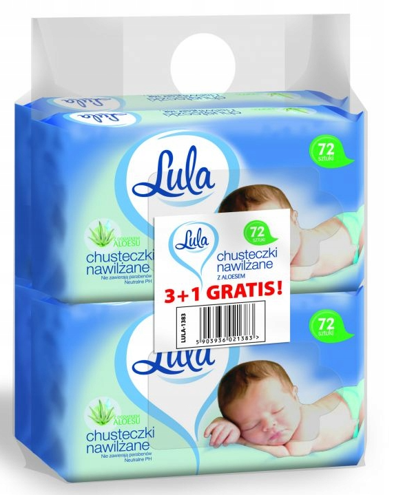 Lula Chusteczki Nawilżane z Aloesem 3+1 Gratis 4x72szt Dla Dzieci