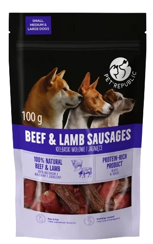 Przysmak Dla Psa Kiełbaski Wołowe i Jagnięce PetRepublic 100g