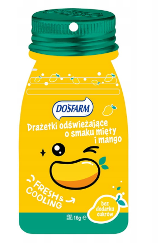 Poznaj idealne połączenie świeżości mięty i egzotycznej słodyczy mango! Małe, poręczne drażetki Dosfarm to szybki sposób na odświeżenie oddechu i poprawę nastroju w ciągu dnia.