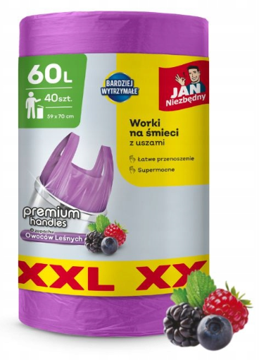 Worki na śmieci 60L z uszami Jan Niezbędny XXL 40szt zapach owoce leśne