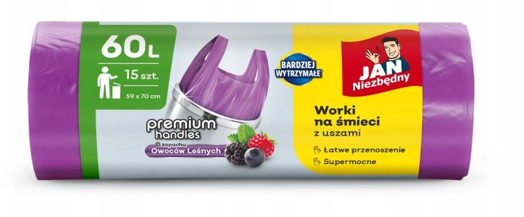 Worki Na Śmieci 60L Z Uszami Jan Niezbędny 15szt Zapach Owoce Leśne