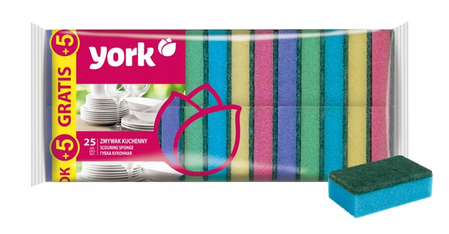 Zmywak kuchenny YORK 25 szt +5 GRATIS – Gąbki Do Naczyń, Kolorowe, Trwałe