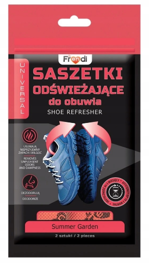 Przywróć swoim butom świeżość inspirowaną letnim ogrodem! Saszetki Frendi Summer Garden to szybki i skuteczny sposób na pozbycie się nieprzyjemnych zapachów oraz nadmiaru wilgoci. Wystarczy włożyć je do obuwia, aby cieszyć się lekkością, czystością i przyjemnym aromatem każdego dnia.