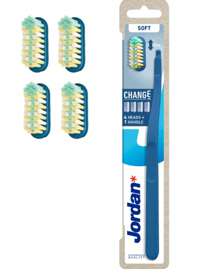 Jordan Change Soft Miękka – Szczoteczka + 4 wymienne końcówki (zapas)
