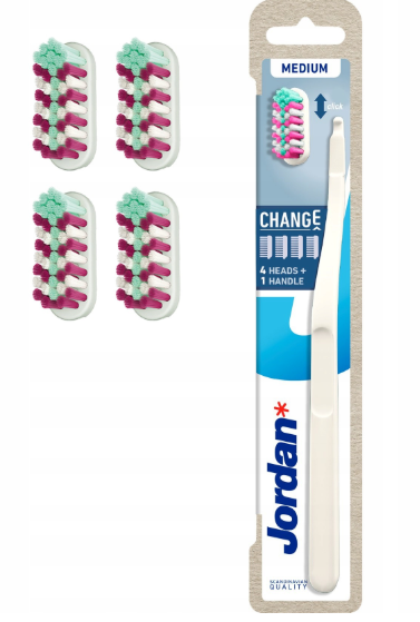 Jordan Change Medium Średnia – Szczoteczka + 4 wymienne końcówki (zapas)